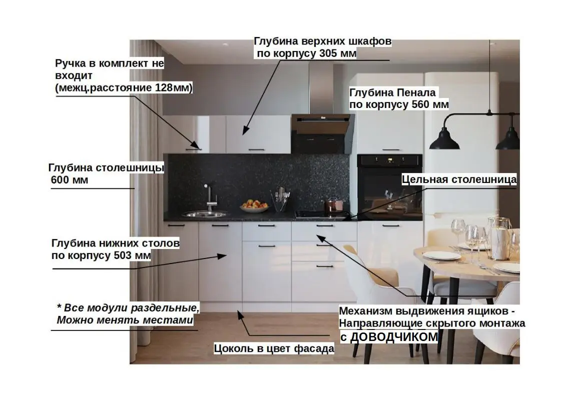 *Дополнительную информацию о том, как купить Кухонный гарнитур Белый глянец-1 (2400 мм) уточняйте у нашего менеджера по телефону 8 (800) 500-54-49.