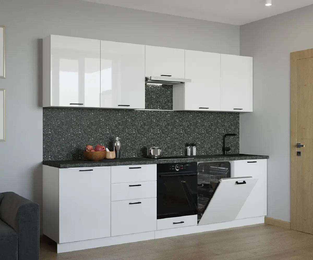 Белая глянцевая кухня неизменно пребывает на пике популярности. Она является настоящим олицетворением легкости, свежести и гармонии. В таком помещении даже воздух покажется более чистым, а солнечный свет наполнит ярким сиянием каждый ее уголок.