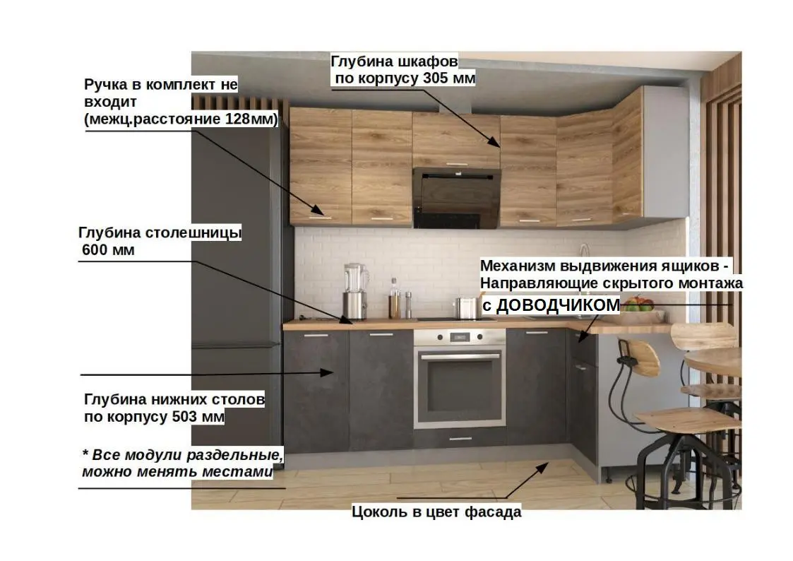*Дополнительную информацию о том, как купить Кухонный гарнитур ЛОФТ-1 (2400х1200 мм) уточняйте у нашего менеджера по телефону 8 (800) 500-54-49.