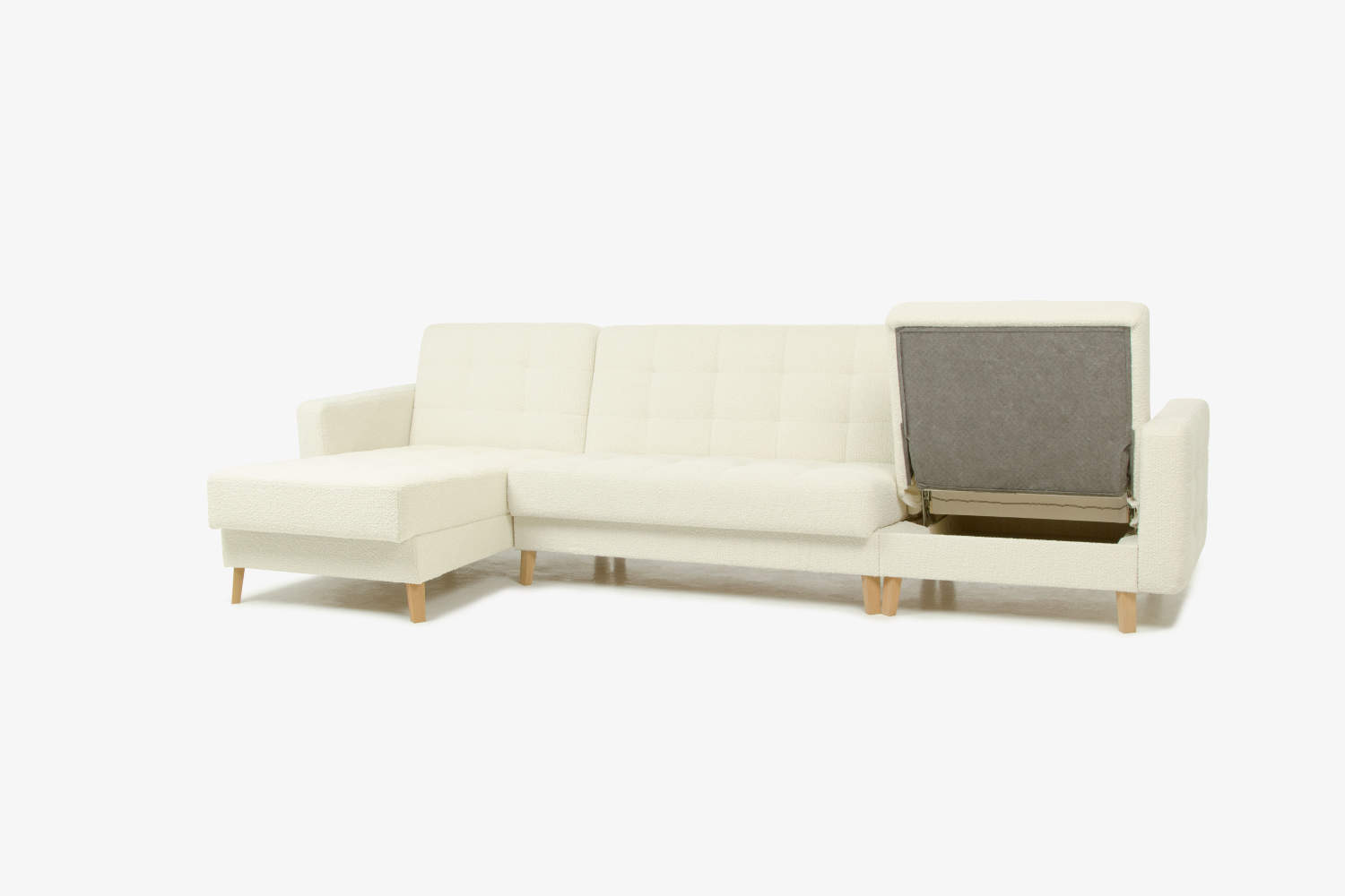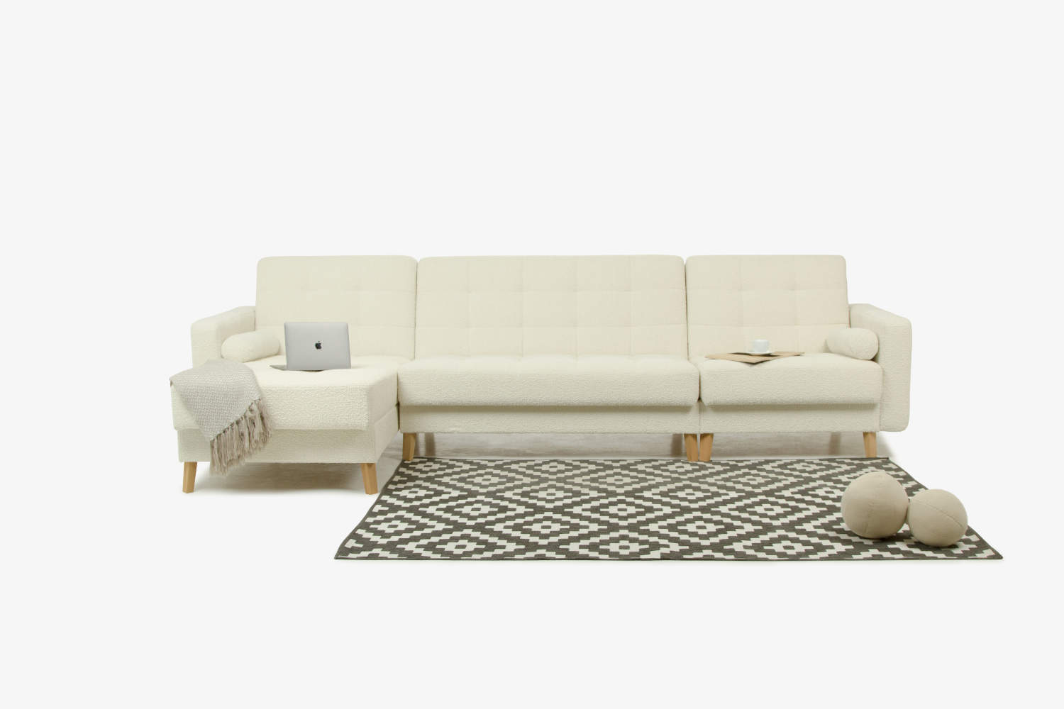 При трансформации одноместного модуля коллекции «Скандинавия» вы образуете угловой диван. В таком положении одноместный модуль создает имитацию оттоманки и позволяет занять максимально удобное положение на диване - с вытянутыми ногами.