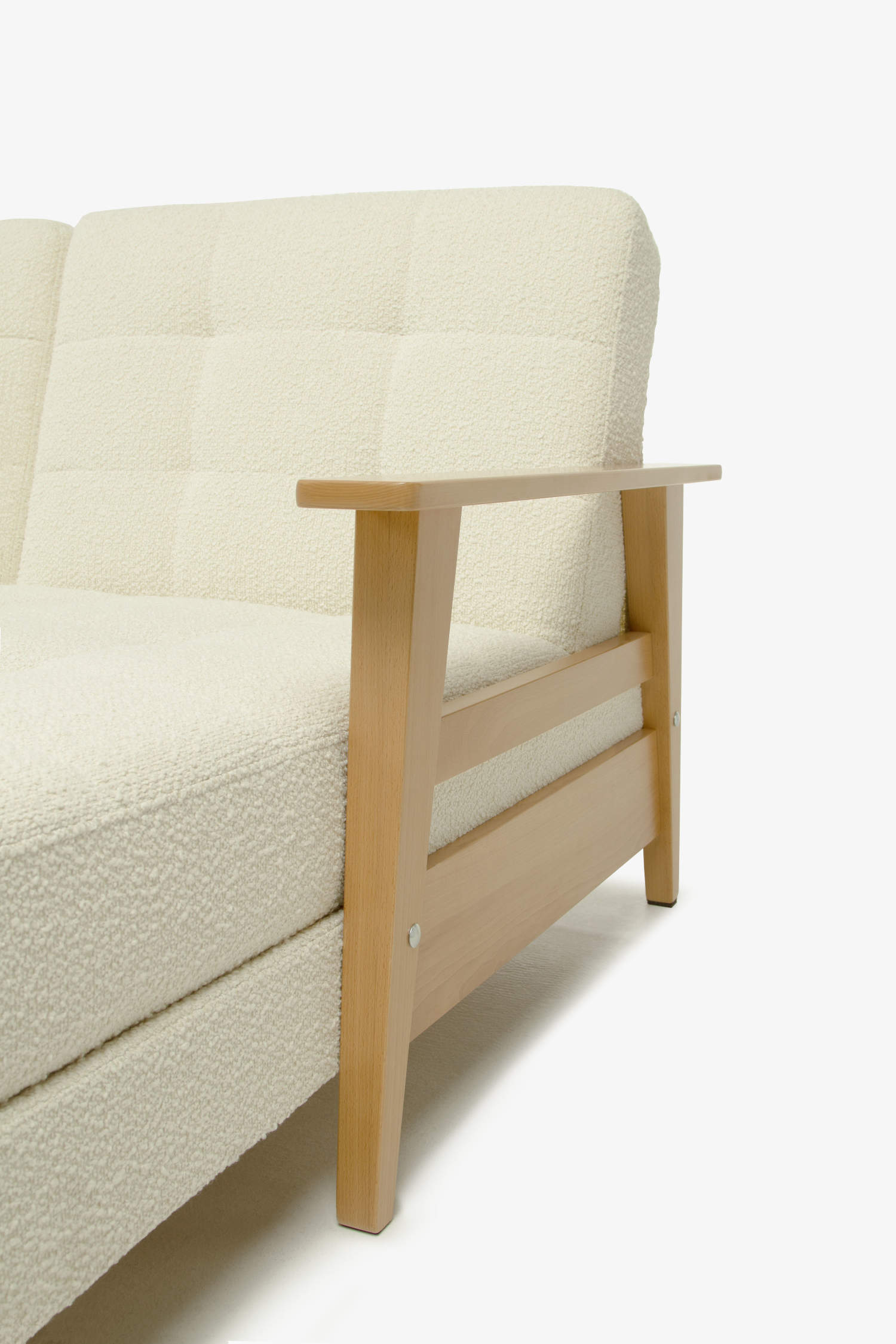 Диван «Скандинавия От+3+От Массив» - классический представитель скандинавского стиля. Его лаконичный дизайн с деревянными подлокотниками из бука, удобными валиками и прямоугольной стежкой удачно дополнит любой интерьер. На таком диване приятно принимать гостей, удобно сидеть и комфортно спать.