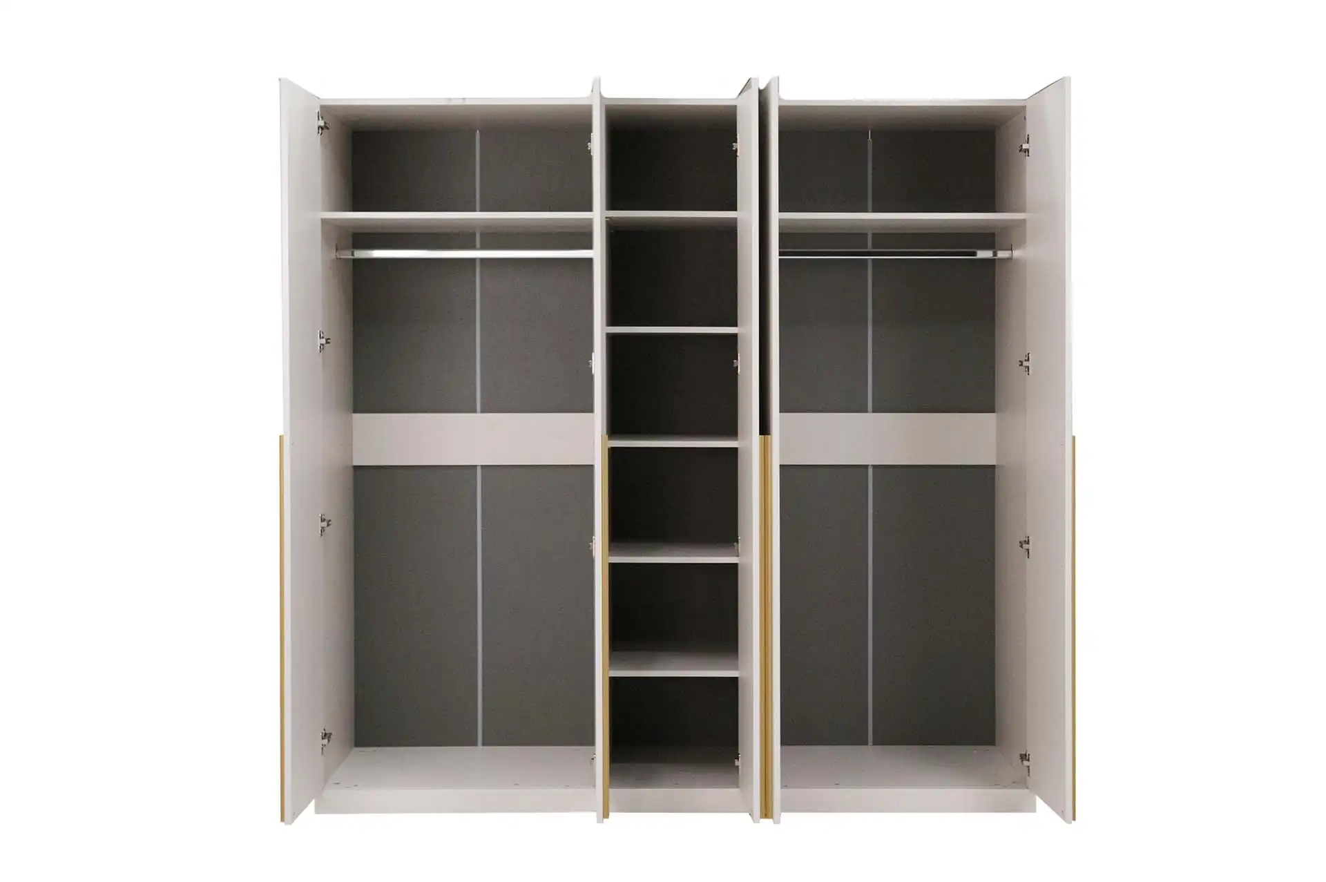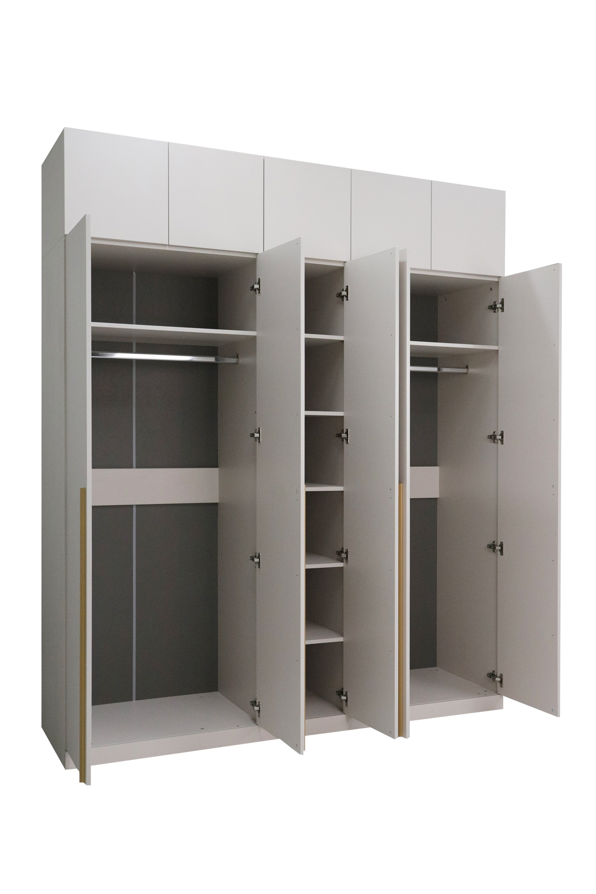 Популярность распашных 5-ти створчатых шкафов на рынке мебели неизменно растет. Благодаря пяти секциям, этот шкаф обладает большой вместительностью и позволяет разделить хранение на несколько функциональных зон.