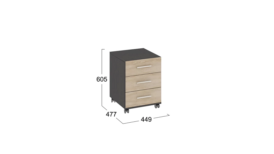 Успех-2 ПМ-184.12 Тумба с ящиками выкатная Венге Цаво/Дуб Сонома