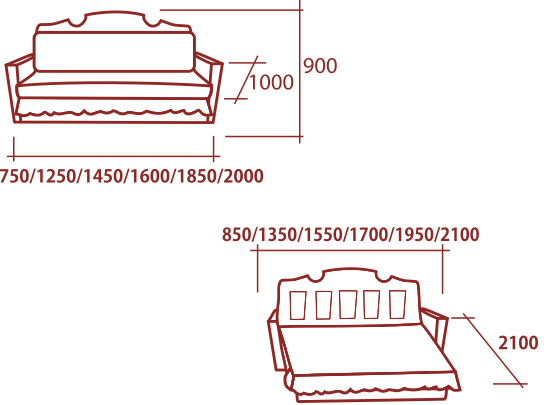 | Ширина спального места, мм | 800, 1200, 1400, 1550, 1800, 1950 |