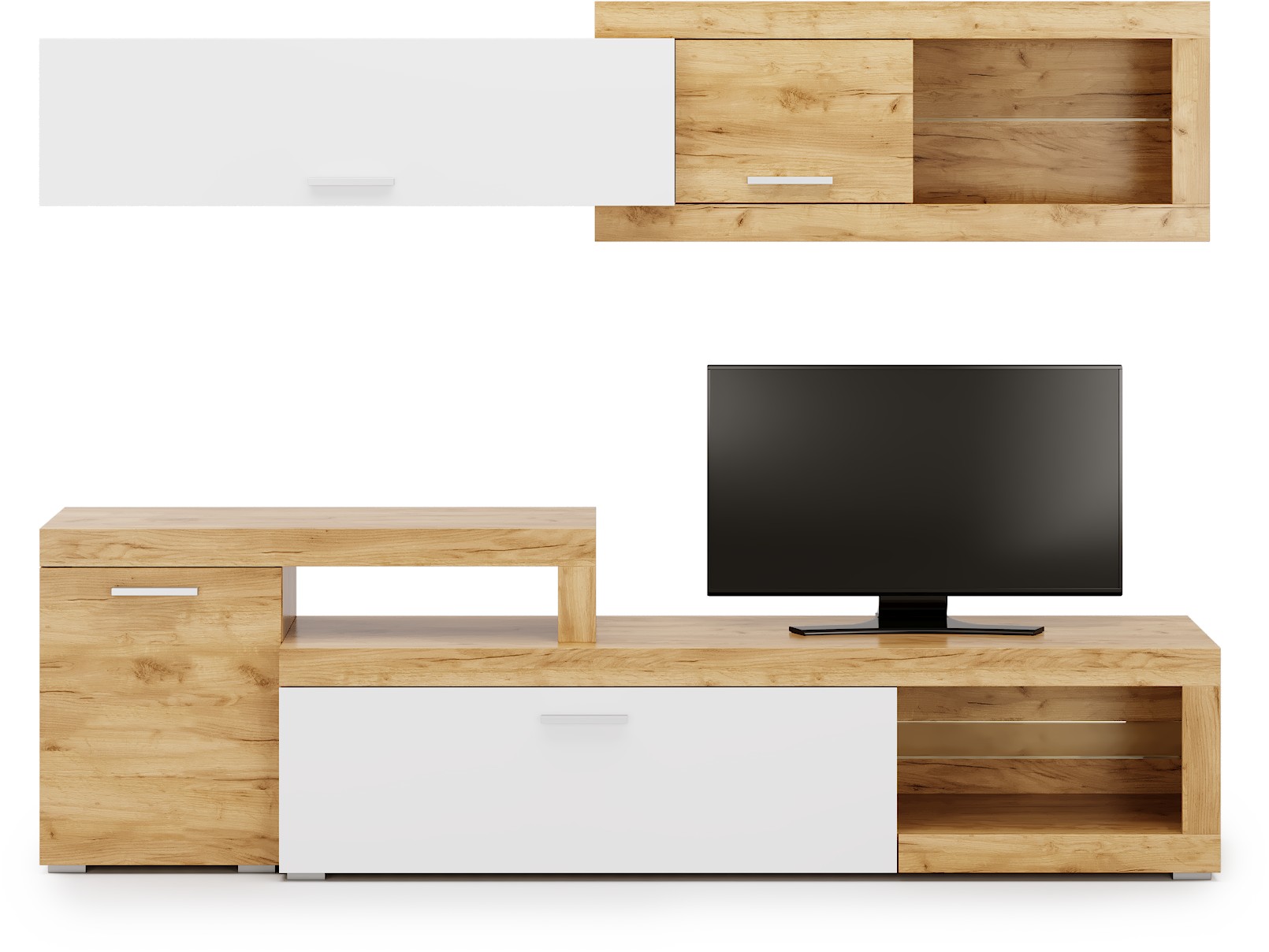 Гостиная Канзас — композиция, которая поможет оформить легкую, стильную и практичную обстановку. Стенка оснащена удобной системой хранения и нишей для ТВ.