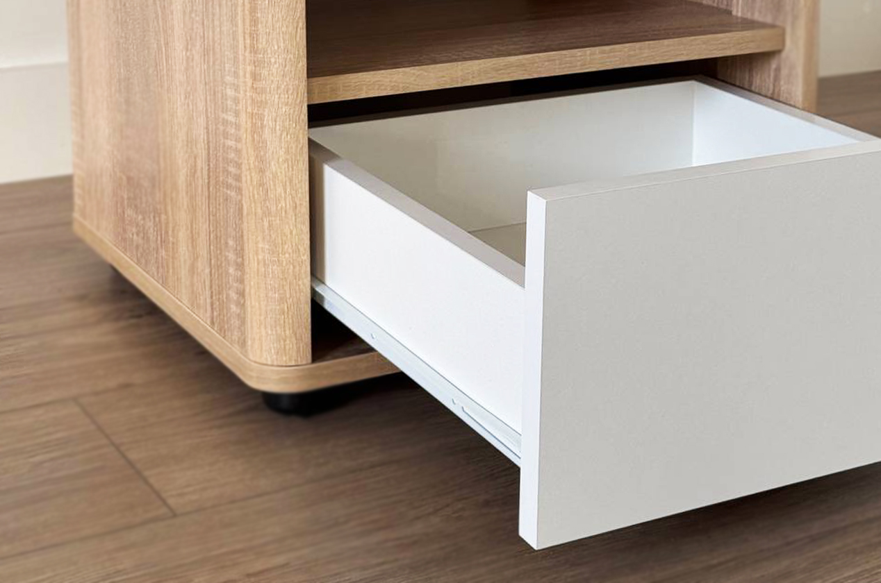 Прикроватная тумба Зара - это отличное дополнение к любой спальне. Ее аккуратный дизайн включает в себя выдвижной ящик и открытую нишу для удобного хранения ваших личных вещей. Особое внимание уделено безопасности: углы тумбы аккуратно скруглены, исключая острые выступы, что делает ее идеальным решением для спальни.