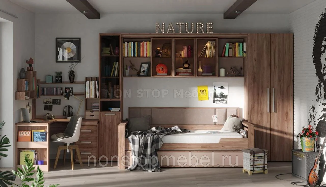 Современная мебель для детской или подростковой комнаты должна быть не только удобной и практичной, но и стильной. Молодежная коллекция Nature соответствует всем эти параметрам и способна удовлетворить любые требования нынешней молодежи.
